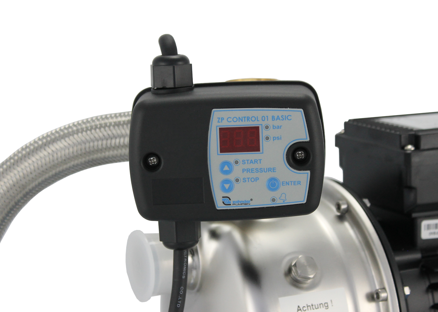 • durch den digitalen Druckschalter schaltet sich die Pumpe automatisch ein und aus