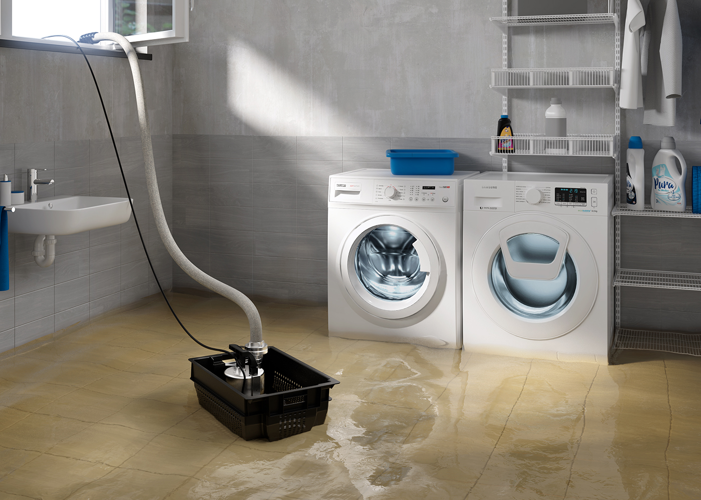 • przenośna skrzynia do awaryjnego wypompowywania i usuwania (zalewającej) wody gruntowej i wód powodziowych