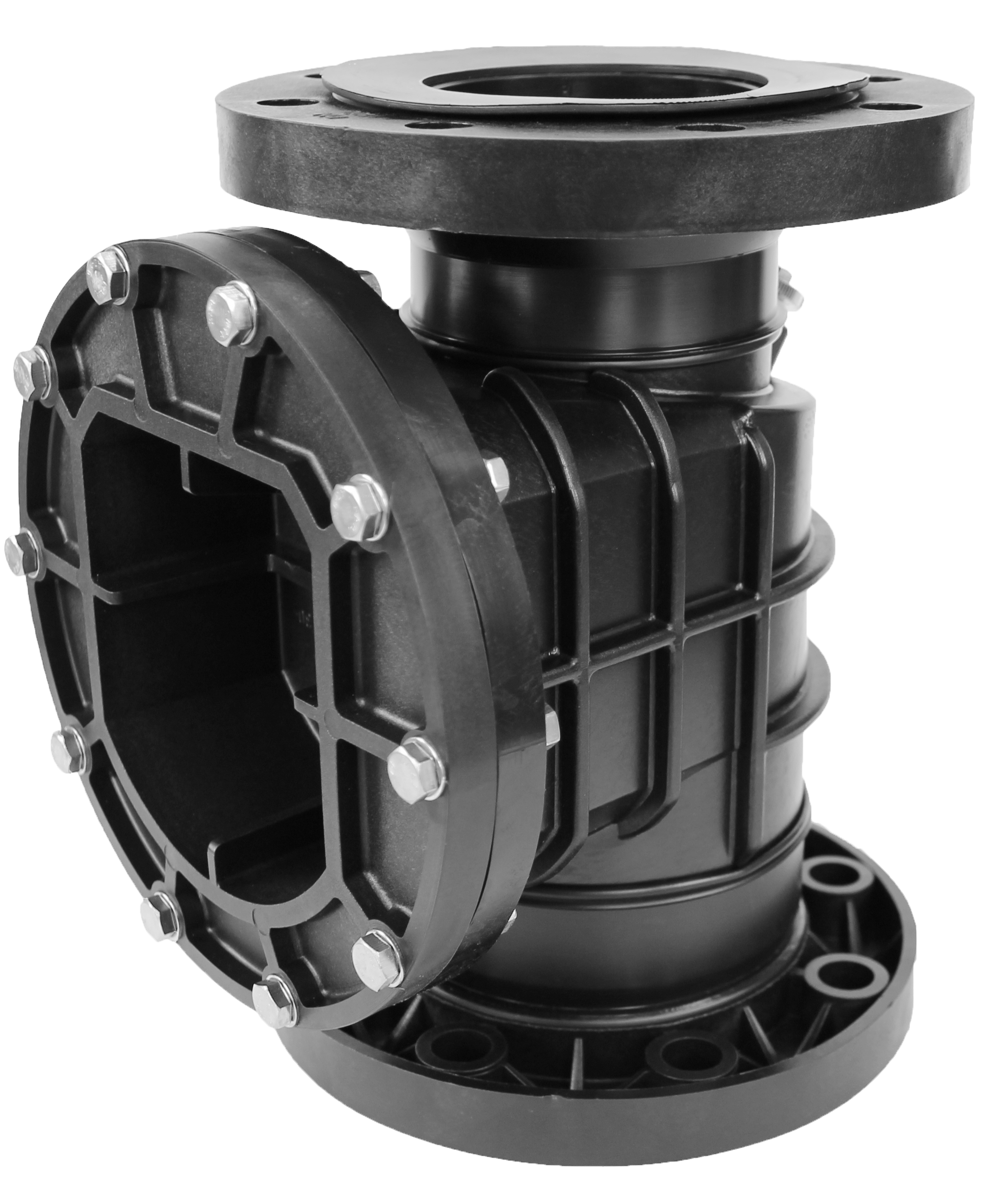 • Pumpengehäuse mit angegossenem Abgangsbogen DN 100
